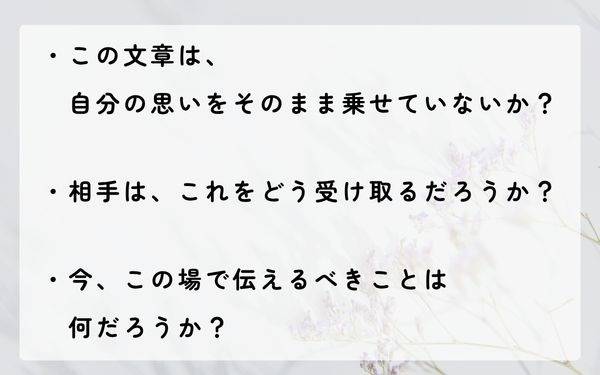 「相手がこれを受け取ったとき、どう感じるか」だけに意識を向けること。